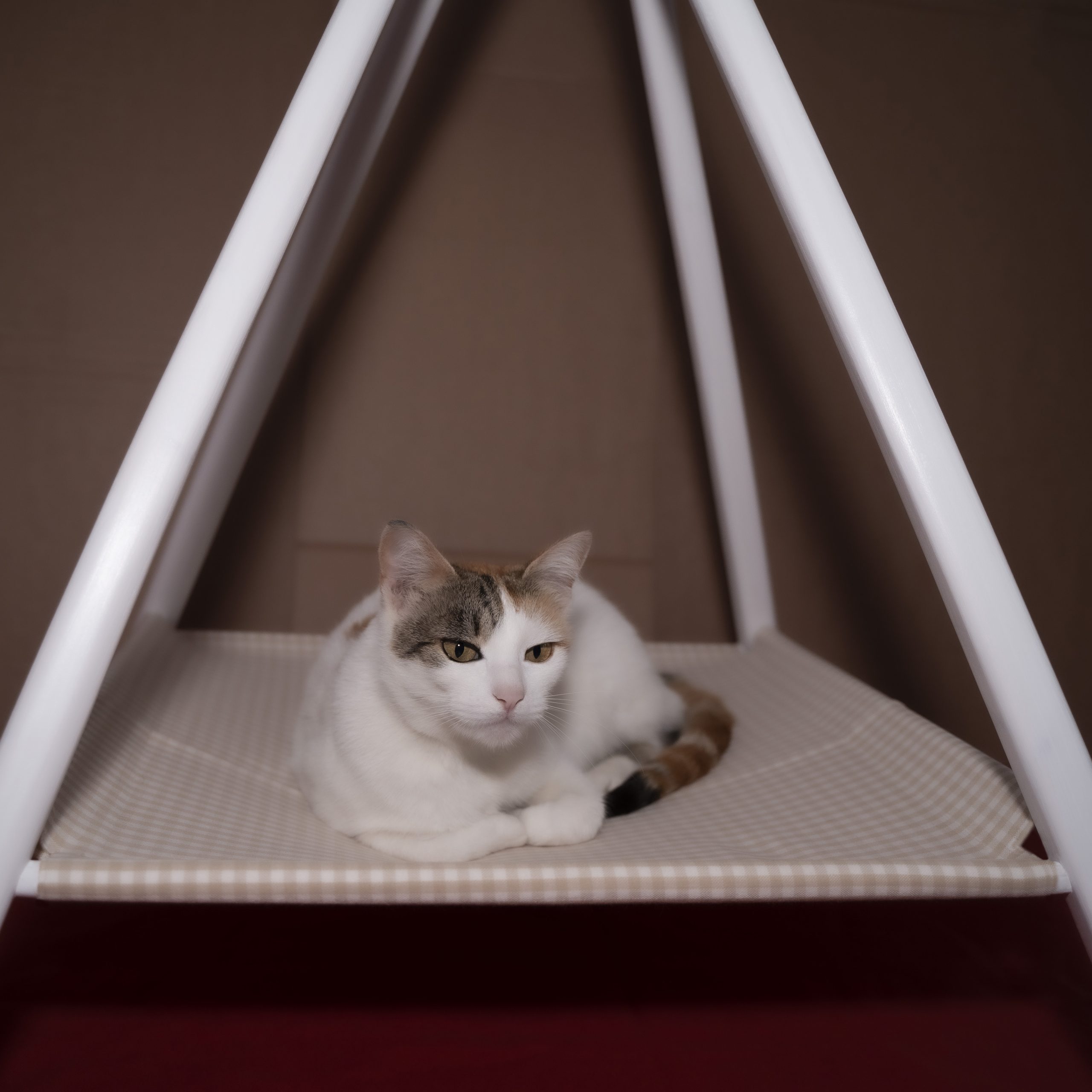 - Színek : KERET – fehér, VÁSZON – 100% PAMUT textilszövet, kis kockás minta, bézs és fehér árnyalatokkal.